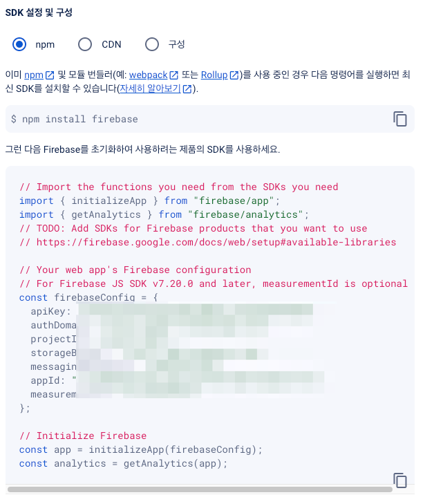 1. firebase web app 생성하기